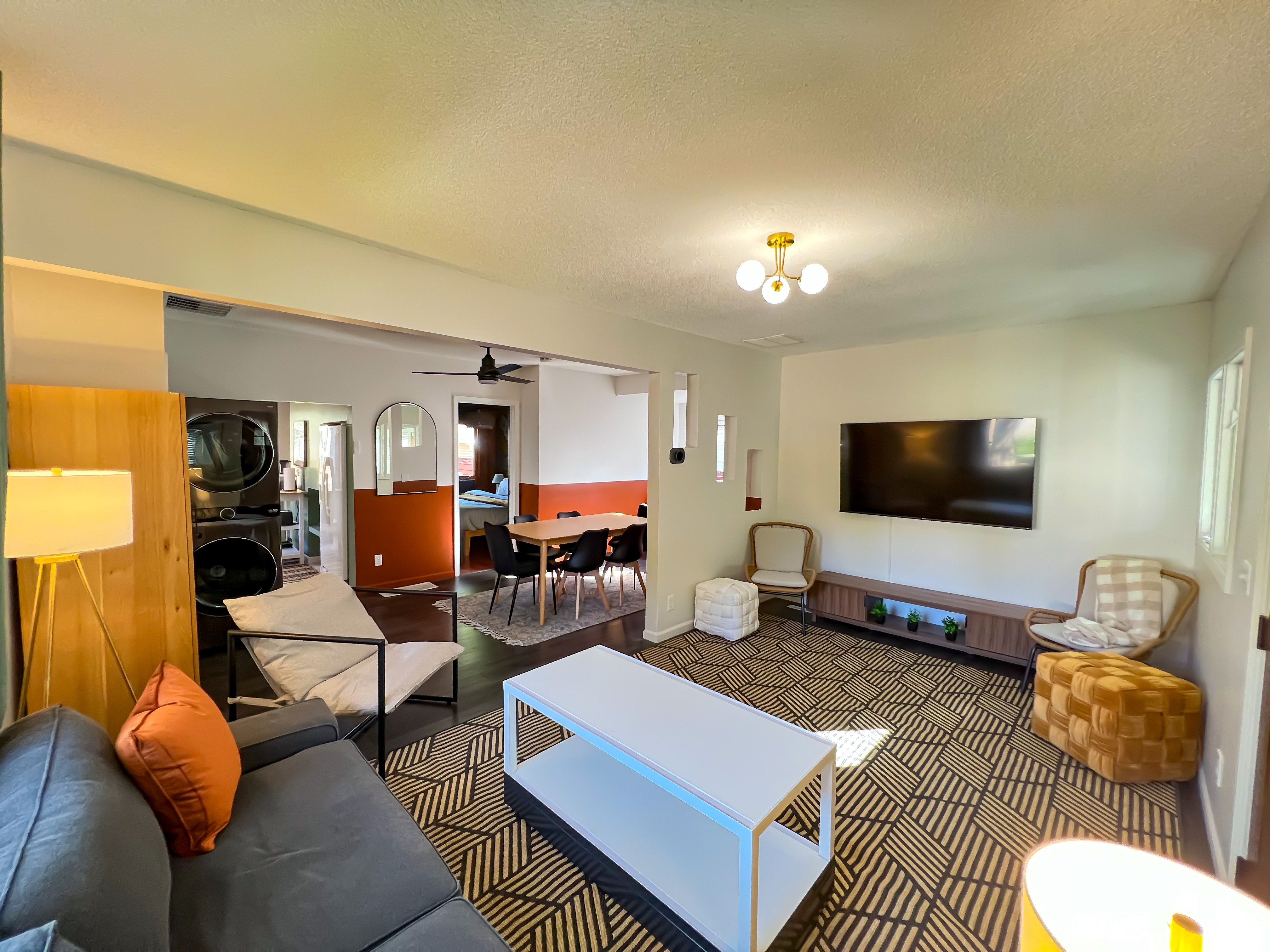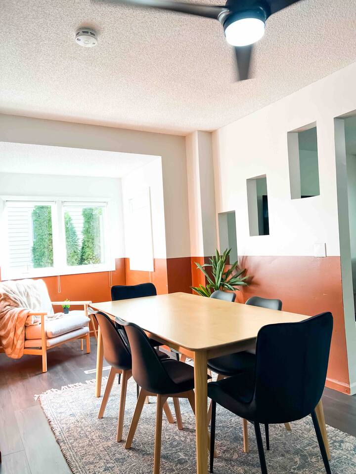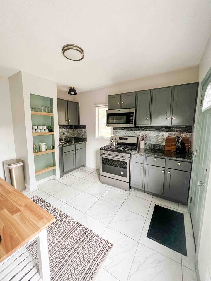 The Space Enjoy this cozy, fully furnished 3-bedroom, 1-bathroom pet-friendly home in Minneapolis, comfortably sleeping up to 7 guests (including a sofa bed in the living room). Perfect for families, pet owners, or groups exploring the Twin Cities! Each bedroom features brand-new mattresses, premium bedding, plenty of charging outlets, and storage in closets/drawers. Main-level Bedroom 1: Luxurious king bed Upstairs Bedroom 2: Comfortable full/double bed Upstairs Bedroom 3: Cozy queen bed (accessible through Bedroom 2, with a separating door for added privacy) Two bedrooms have private doors, and blackout shades ensure restful sleep. Kitchen & Dining Cook homemade meals in the fully equipped kitchen, stocked with coffee, tea, filtered water/ice from the fridge, and essentials. The dining room seats 6—great for family meals or takeout from nearby Minneapolis restaurants. Living Room Relax in front of the large 65" smart TV (log into your streaming accounts!) on the comfy couch—ideal for movie nights. Outdoor Space & Patio Unwind in the beautifully landscaped yard with a fully fenced backyard (perfect for pets!), brick-paved patio, outdoor seating, and string café lights for ambiance. Fire up the charcoal grill for BBQs (bring your own charcoal; grill unavailable in winter). A nearby market has supplies! Washer & Dryer In-unit washer and dryer available for your convenience during longer stays. Parking & Garage Convenient driveway parking year-round. For stays longer than 2 weeks, access to the detached garage is available with prior approval—perfect for protected parking during snowy Minneapolis winters. Just let us know in advance! Family-Friendly Amenities We welcome guests of all ages and love hosting families (as parents ourselves)! While not fully child-proofed (note: stairs, low upstairs windows, and a 24" elevated patio without rails—supervision recommended), we've added safety features: Tamper-proof outlets & plug protectors Cord hiders Pack 'n Play portable crib Foldable high chair Kid-friendly bibs, plastic plates/cups, and silverware Baby gate Fun baby books Booking confirms acknowledgment of these details—we prioritize safety for a wonderful stay! Prime Minneapolis Location Centrally located for easy Twin Cities access: University of Minnesota (U of M): 2.6 miles US Bank Stadium: 3.2 miles Target Field: 4.3 miles Uptown: 4.9 miles MSP Airport: 6.3 miles Mall of America (MOA): 7.7 miles Close to downtown Minneapolis, parks, trails, light rail, and pet-friendly walks.